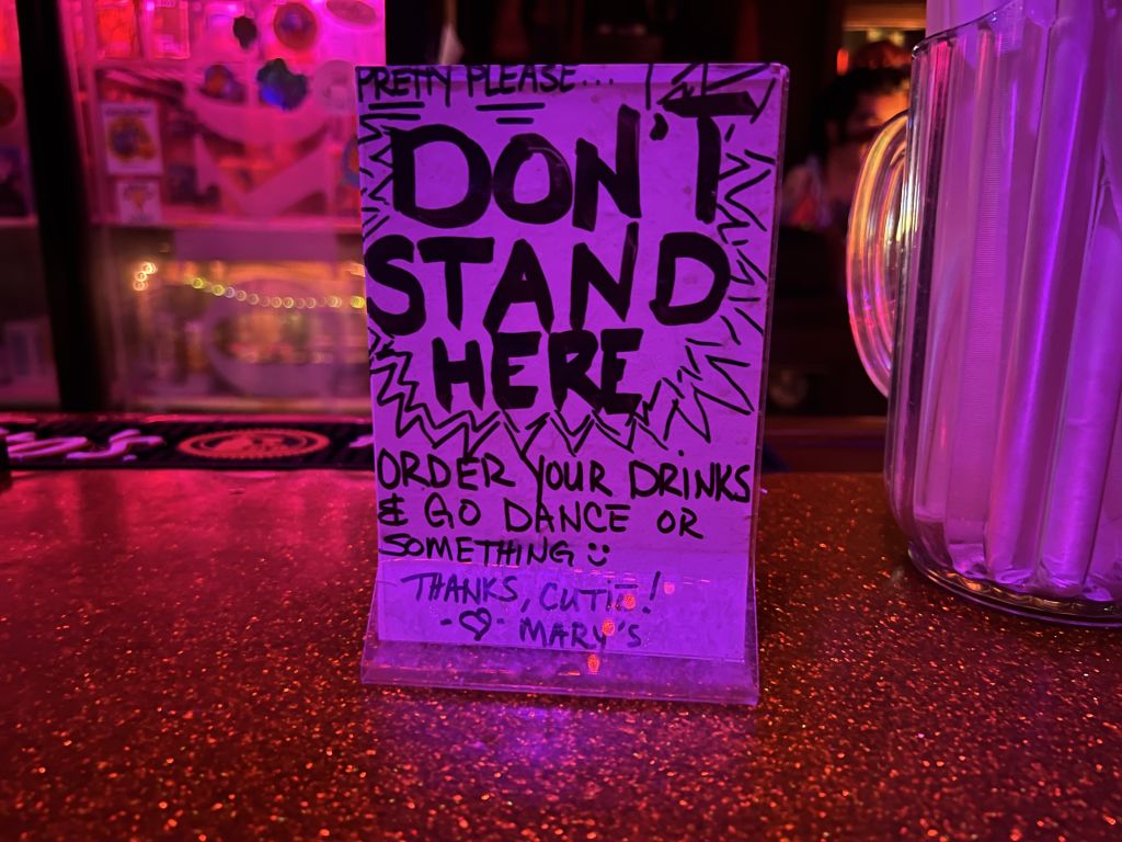 Insider Tip: On your way to the back patio, the vibes get even cooler as you pass a glass tabletop Ms. Pac-Man machine and an old school nostalgic photo booth. The patio is chill if you want a smoke break or a moment away from the music. Mary’s makes tipping easier by showcasing the performers’ Venmo and Cash App information on multiple screens throughout the bar. This is a cashless bar with no ATM and no change for tips. If you want to throw some money, be sure to bring cash (ones, fives, etc.) to tip performers. Parking is free in the rear.