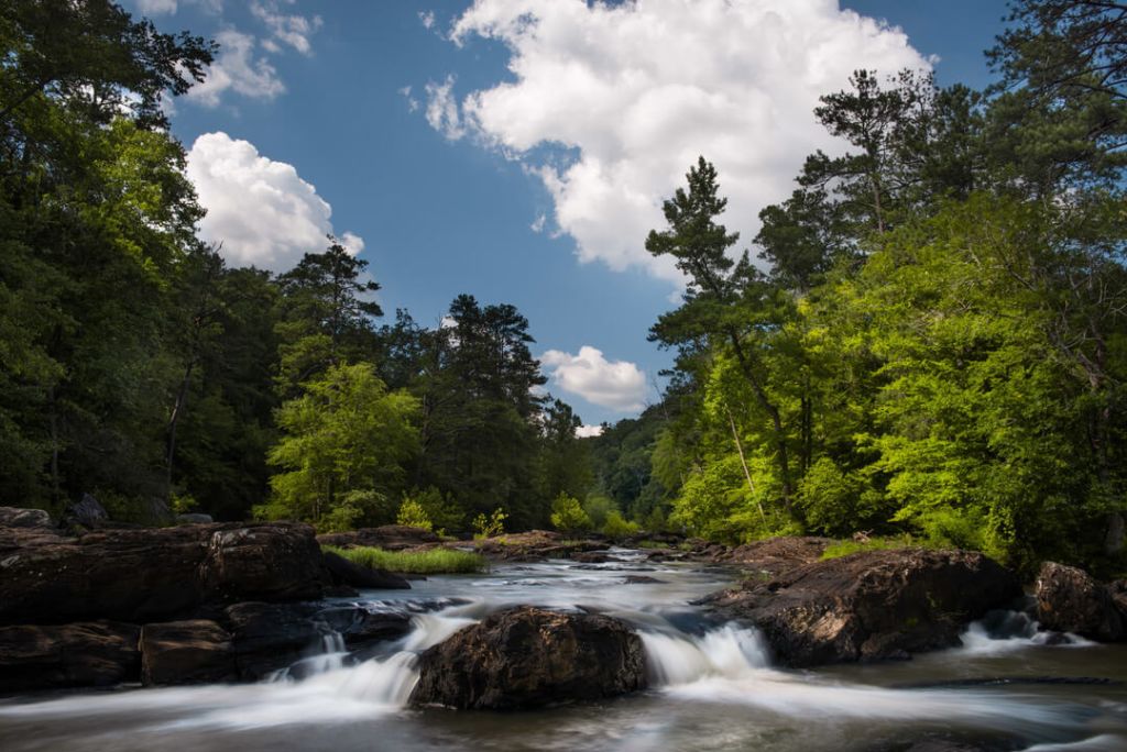 A solo 15 millas al oeste de downtown Atlanta, se encuentra Sweetwater Creek State Park, un parque estatal que tiene su nombre gracias al largo arroyo que lo cruza. Este parque se extiende a lo largo de 2,500 acres e incluye senderos, áreas de acampar, áreas de picnic y un lago de más de 200 acres. Al entrar, un sendero rodeado de árboles corre a lo largo del arroyo y llega hasta las ruinas de New Manchester Manufacturing Company – una vieja fábrica de textiles que fue incendiada en los tiempos de la Guerra Civil. Más allá de las ruinas de este edificio comienza un camino más retador con una subida empinada que en la cima, ofrece vistas panorámicas de las quebradas del arroyo.