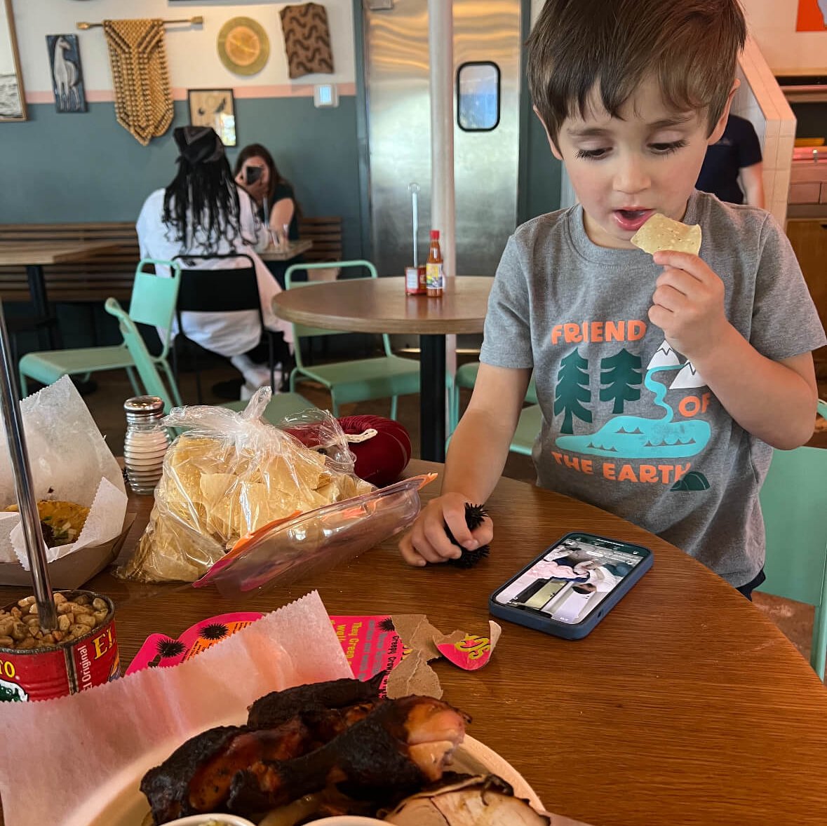 Do you wish there was a restaurant with an area for kids to safely play while offering amazing Mexican food and cold margaritas? You found it. El Tesoro feels like walking into a friend’s backyard party. Order, sit down and let your kid play with others as if technology did not exist. Tablets are a thing of the past as they get their hands dirty on the dirt and gravel, climb the big tree and negotiate among each other a game of 4 in a Row. The menu has endless options for adventurous kids and a niños quesadilla, which is a solid choice for picky eaters.